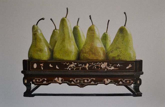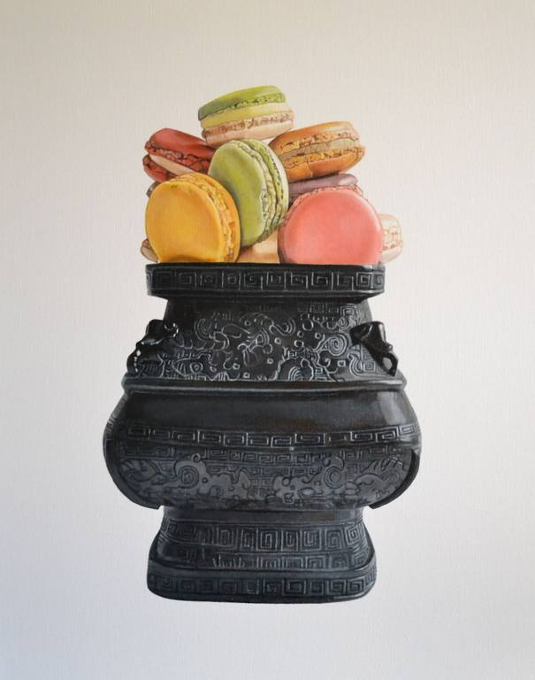 Mmm, art that is good enough to eat 🙂 Les Macarons and Les poires by Agnes Lefevre put a smile on my face. The touch with ancient vases is very stylish imho. Off to have a pear now! Have a nice weekend!