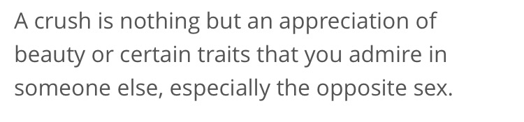 I think the type of crush they are referring to is a fleeting sort with a stranger passing through someone’s life. Or somebody like a celebrity. I get it. These ones are indeed alright.