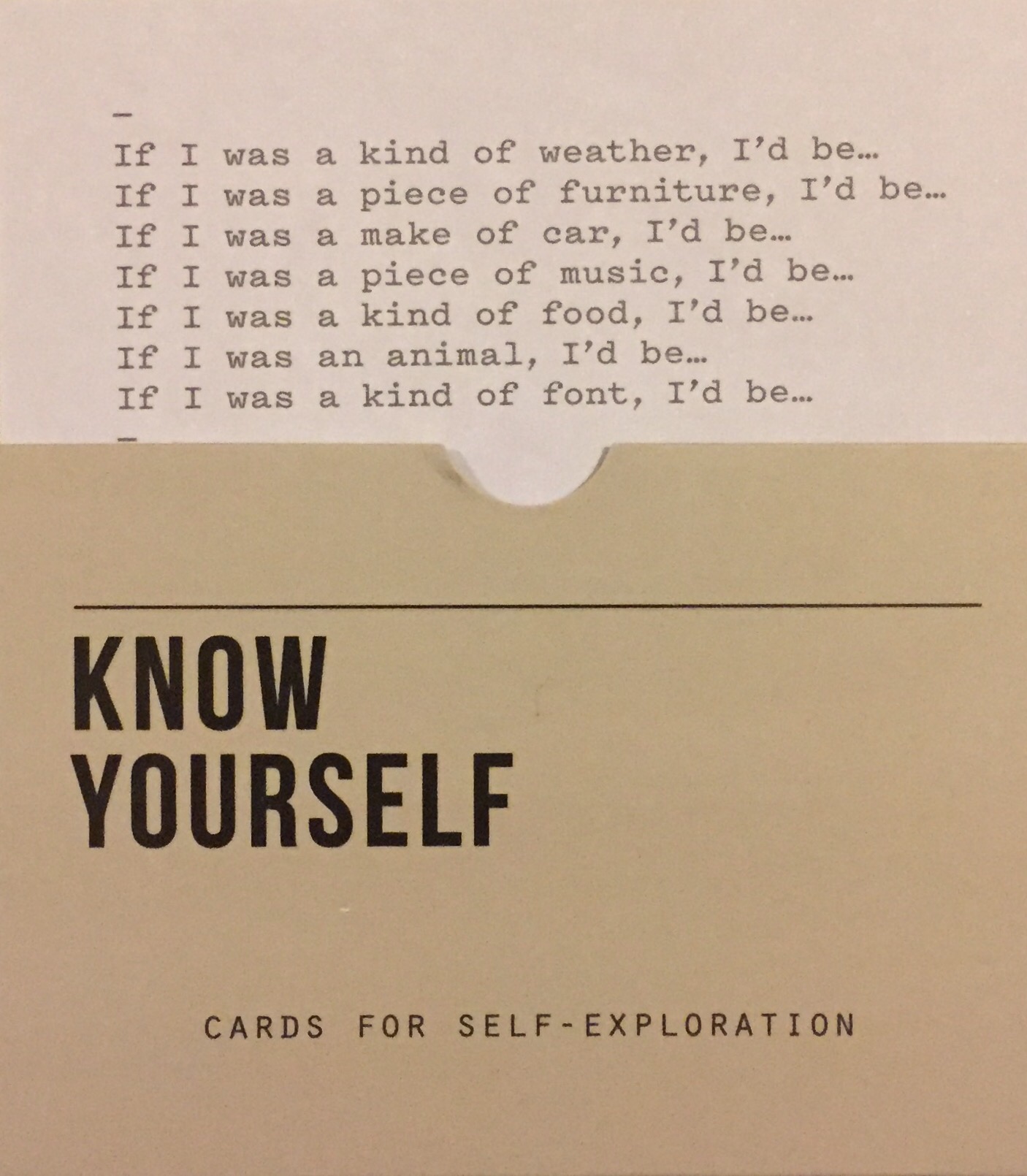 In light of the above, this blog makes complete sense 🙂 Here is another way of understanding yourself more – this is a card from The School of Life’s Know Yourself series (another fun tool I invested in!). Do this exercise (writing down your answers is best so you could see and analyse themes) and see what you discover about yourself.