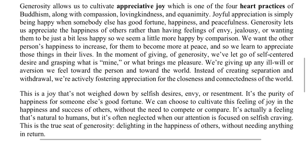 In Buddhism they talk about mudita, the joy for others, appreciative joy. Now this is an interesting one to add to the list. How are you doing with mudita? Have you experienced it lately? Next time you scroll through the social media or hear a friend’s good news, is this something you could remember about and practice and see how it makes you feel?